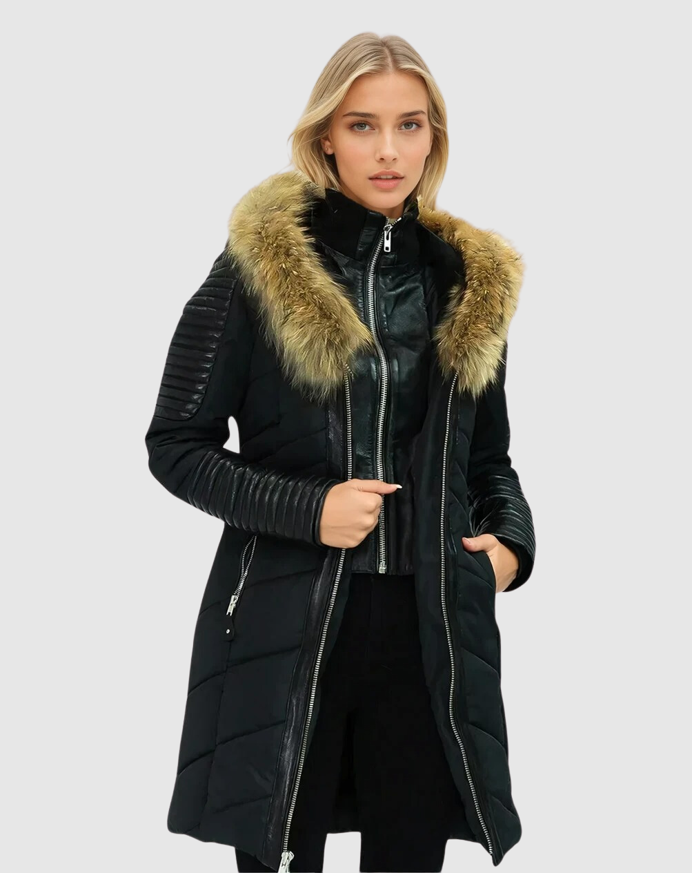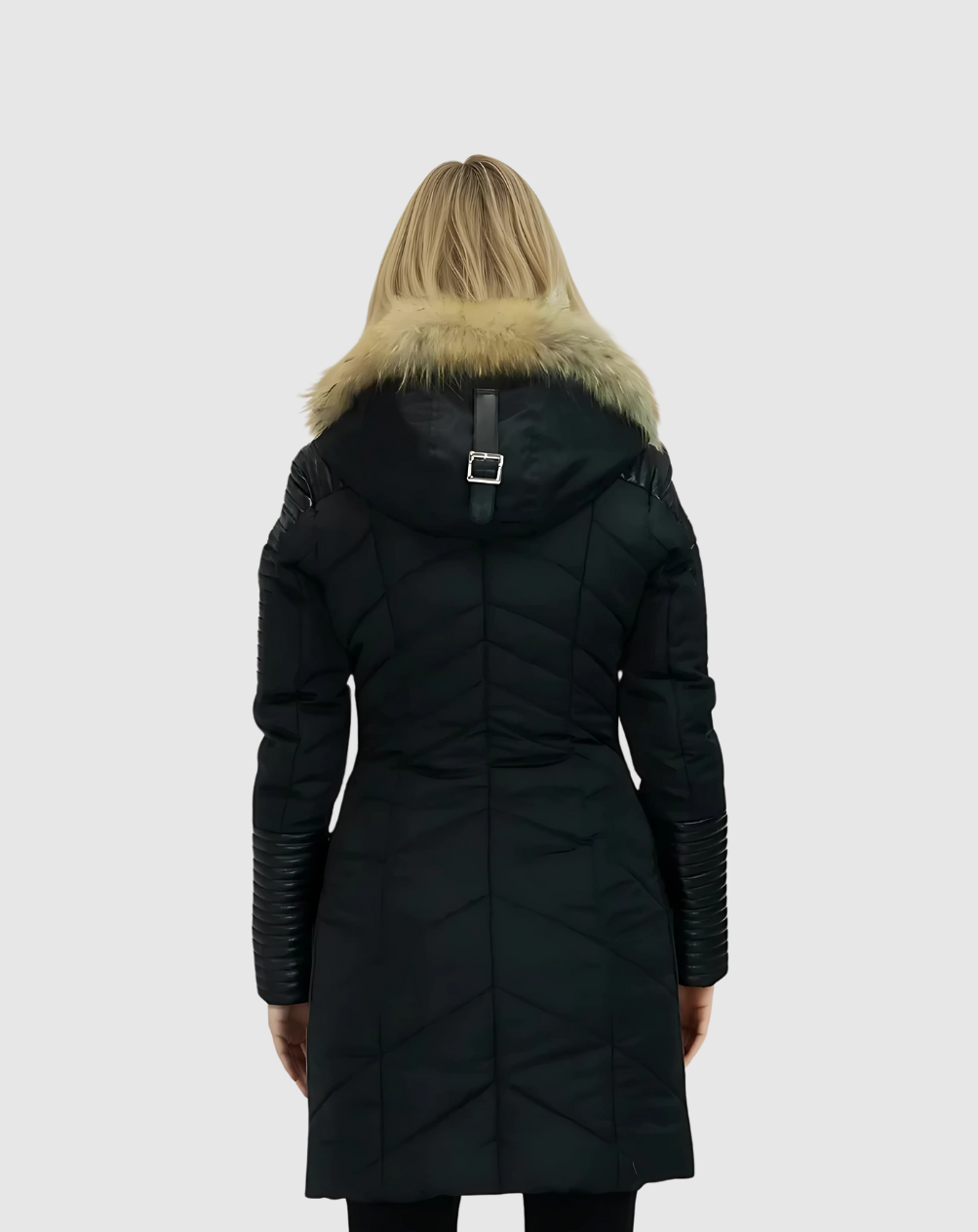 The Odette Nordica is a premium long black quilted coat designed to combine luxury with functionality. Its expertly layered construction offers exceptional insulation, ensuring superior warmth even in the coldest conditions. The coat’s silhouette balances volume and sleekness, providing both comfort and a refined, high-fashion presence.